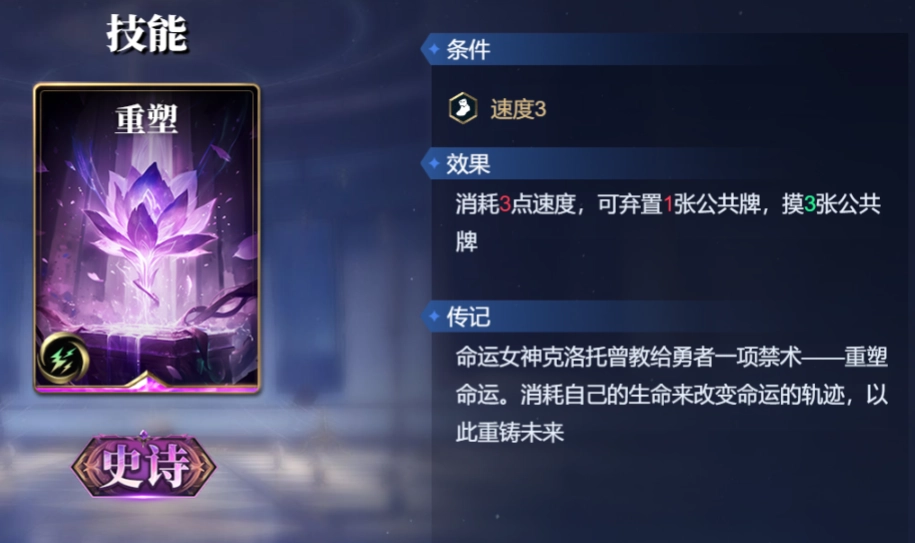 而重塑,是为了弥补祝融的过牌能力,消耗并不怎么需要的速度属性来换公共牌,非常的划算。