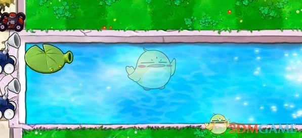 2、第一步,在水池的最左边放置豌豆睡莲。