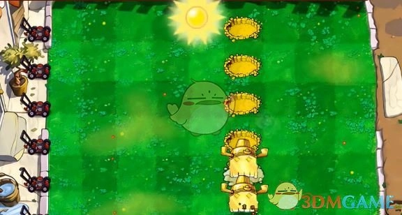 2、踏入关卡后,第一步是在第六列摆满宝藏吞噬者。