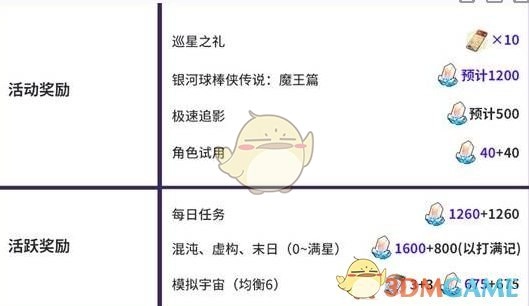 2、银河球棒侠传说:魔王篇:预计1200星琼。