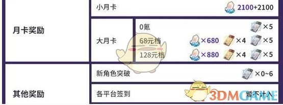 1、小月卡:2100+2100星琼。
