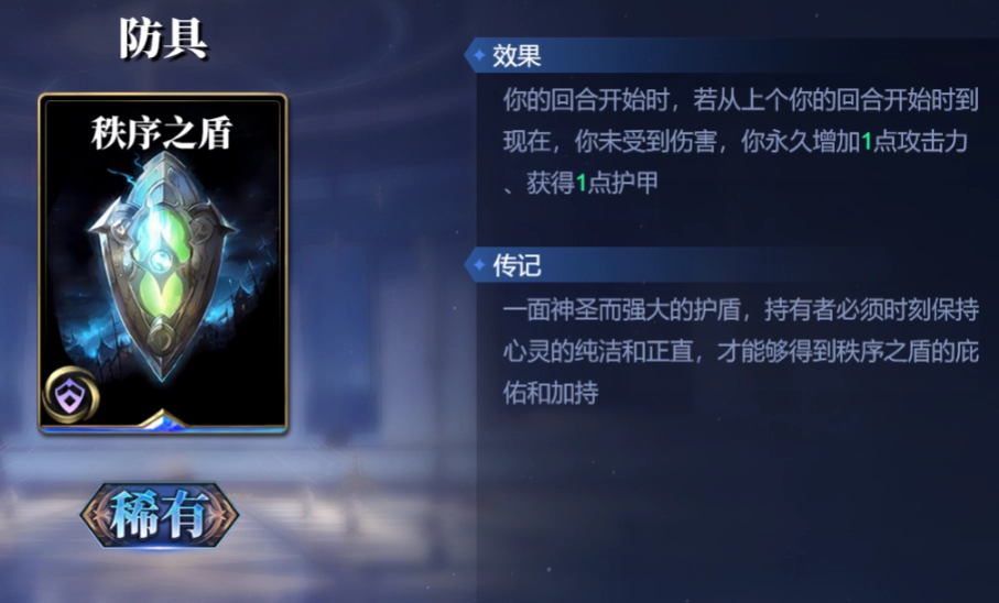 装备秩序之盾后,会令对手极为难受。若无法造成有效伤害,就只能眼睁睁看着你的攻击力逐步提升。而要是试图拆除它,就会受到【神威降临】带来的2点法术伤害。