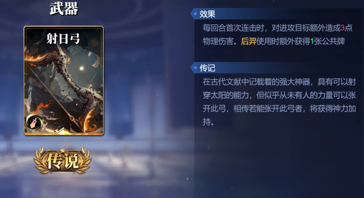 武器选择携带射日弓,射日弓的额外伤害很容易打出,是非常稳定的输出手段。