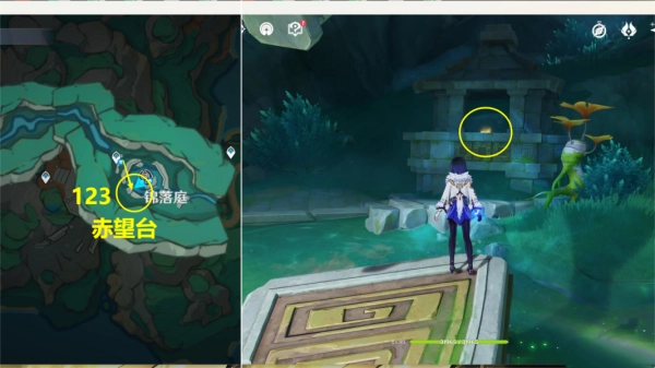 4、抵达赤望台地下的锦落庭后,前往图中所示位置就行。