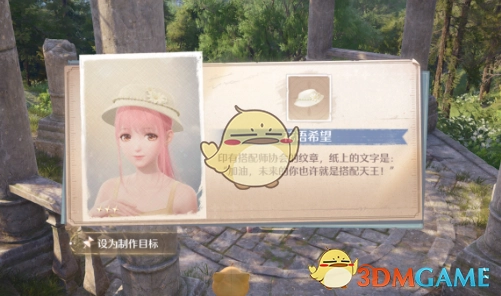 4、径直前往凉亭所在之处,点击开启宝箱,就能获取花语希望设计图,进而制作出花语希望帽子。