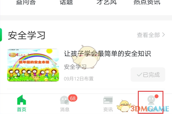 2. 开启安全教育平台后,进入后台,点击右下角的“我的”按钮。