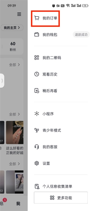 3、随后进入更多页面,其中有诸多功能,我们要点击的是【我的订单】。