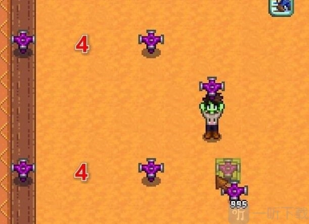 以上就是我们放置洒水器的位置。此外,洒水器的等级至关重要,最好尽早获取铱金洒水器。因此,下矿很有必要。刚开始下矿时,尽量避免战斗,到达40 - 49层或者70 - 79层后,通过坐电梯保存进度,之后多来炸矿就行。