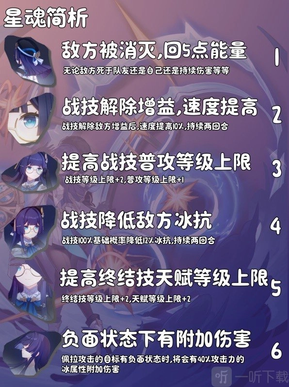 关键星魂为1、4。星魂1可提升佩拉的回能效率,星魂4则增强佩拉在冰c队伍里的辅助能力,并且该负面效果还能触发黄泉与真理医生。