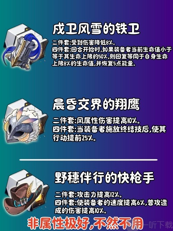 铁卫套装的作用在于提升生存能力,而风套则是起到锦上添花的效果,能让佩拉在释放终结技之后,迅速迎来下一个回合并继续恢复能量。