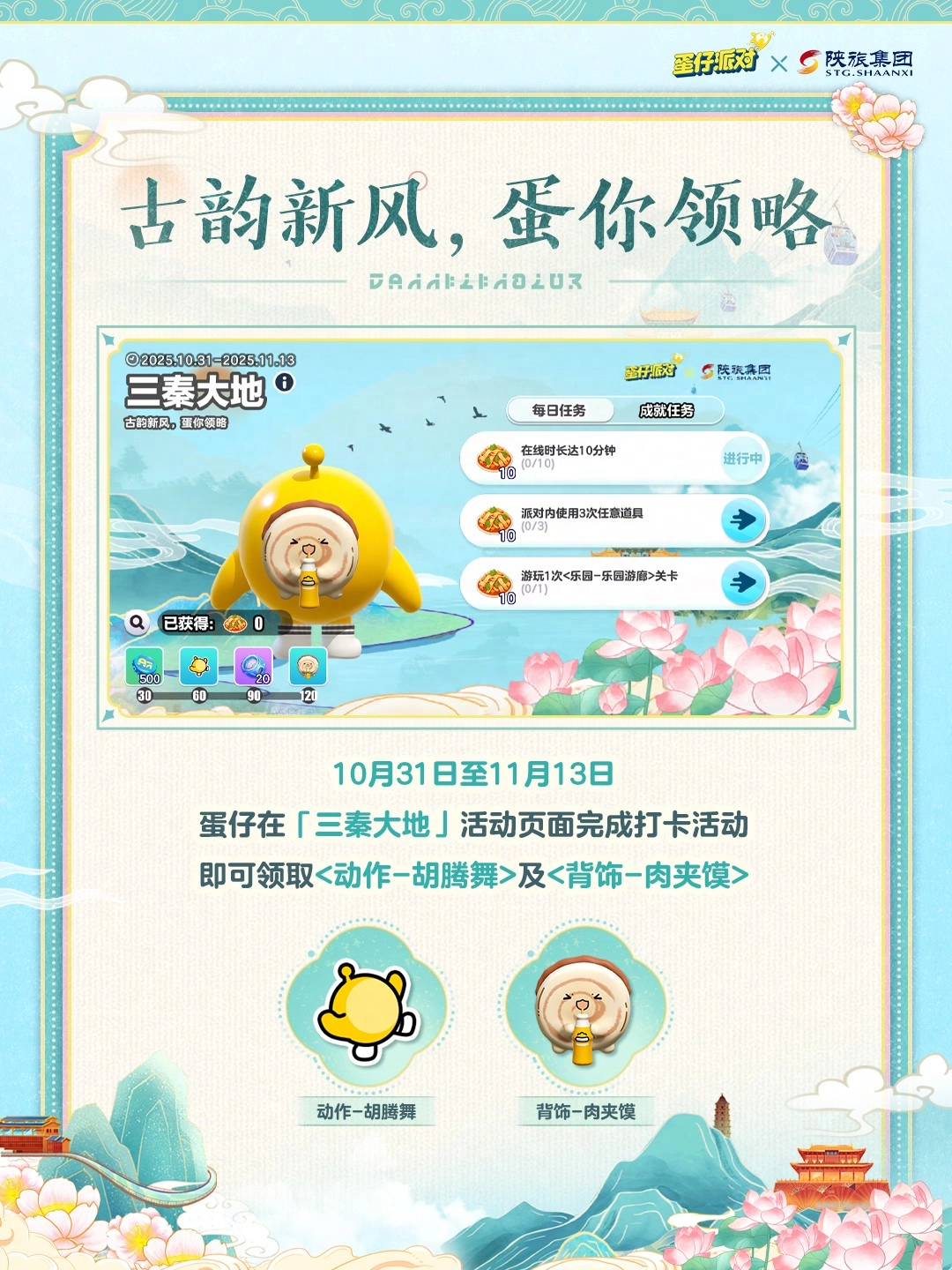 蛋仔在“三秦大地”活动页面完成了打卡活动
