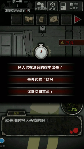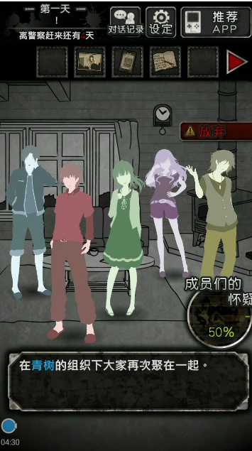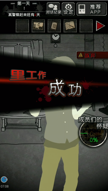 第一天只要成员们对你的怀疑度是0%,就能顺利通关。