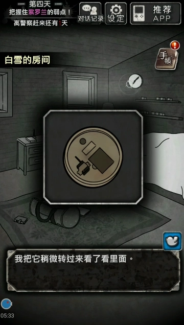 去到紫罗兰的房间,把她支开后搜查房间。