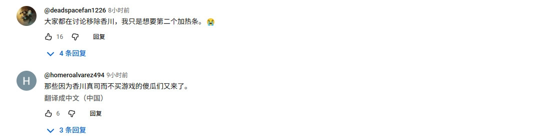 油管评论区的截图显示:不过也有许多国外玩家对香川照之表示支持,他们希望日本不会受到西方这些极左思潮的影响。