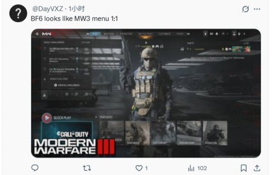 也有玩家指出,《战地6》的UI设计几乎和《使命召唤:现代战争3》的一模一样,简直是1:1复刻。