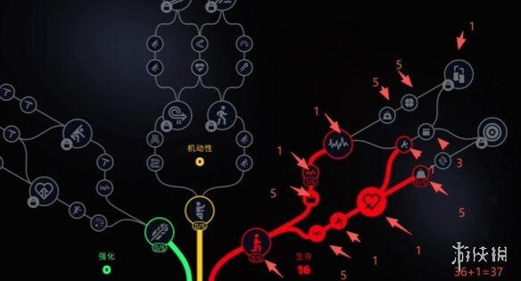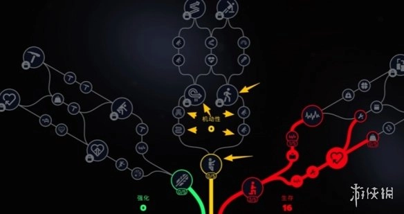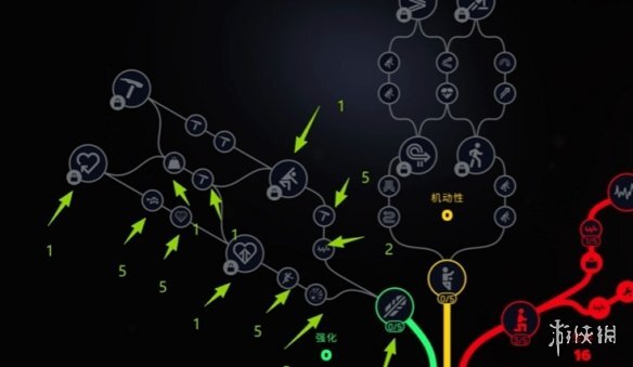 完成核心构建后,建议把剩下的天赋点加到中央机动天赋上,优先挑选能提高攀爬翻越速度或者增强耐力相关的属性。