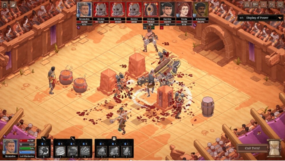 游戏运用别具一格的视觉风格,把黑暗奇幻与像素血腥艺术交织融合,精准展现竞技场的残酷魅力。《角斗士血域》会吸引所有钟情深度策略与成长体验的玩家——像XCOM、Darkest Dungeon、Heroes of Might and Magic、Into the Breach、The Last Spell以及Battle Brothers的粉丝都在其列。
