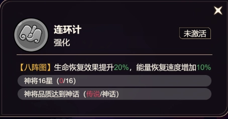 连环计:【八阵图】生命恢复效果提升20%,能量恢复速度增加10%