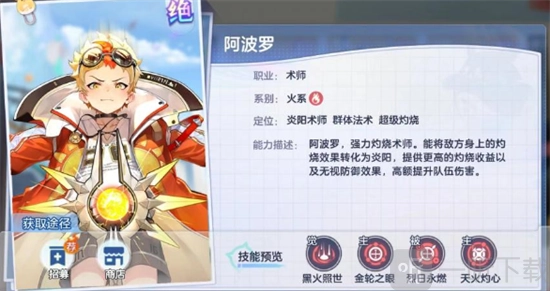 3、在阵容里,阿波罗担当主要输出角色,其技能一旦命中敌人,便能让敌人陷入灼烧状态。