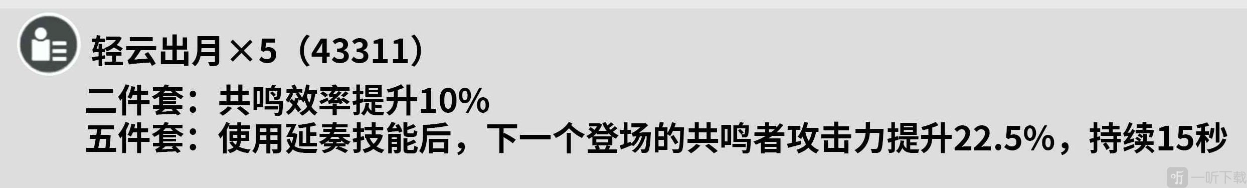 声骸套装包含:轻云出月x5