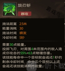 投掷飞刃,对周围4米范围内的敌人造成你攻击的55%+63点物理伤害。