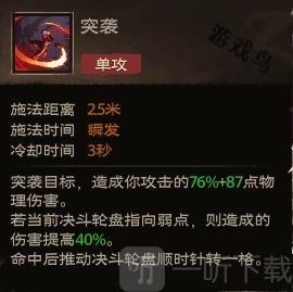 效果:突袭目标,造成你攻击的76%+87点物理伤害。
