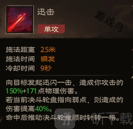 效果:向目标发起迅闪一击,造成你攻击的150%+171点物理伤害。
