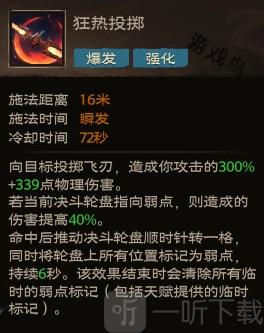 效果:释放决斗的渴望,让你在后续10秒内攻击力提升57点,并且除突袭与狂热投掷外,所有技能的冷却时间缩短50% 。