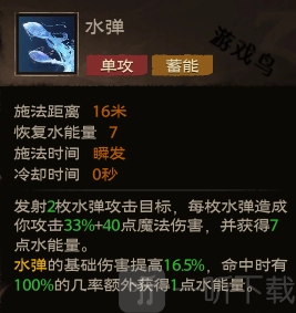 水弹的基础伤害提高16.5%,命中时有100%的几率额外获得1点水能量。