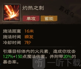 效果:引爆目标体内的火元素,造成你攻击127%+150点魔法伤害。并附带20%的暴击率。
