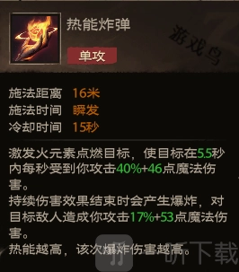 效果:于目标身上产生一枚炽热宝珠,25秒过后,宝珠爆炸,会对其周边4米范围内的敌人,造成相当于你89%攻击数值再加上106点的魔法伤害。