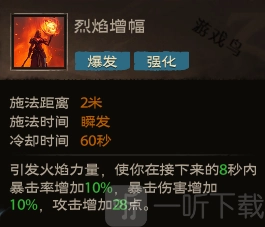 效果:唤起火焰之力,让你在后续8秒内暴击率提升10%,暴击伤害提升10%,攻击力提高28点。