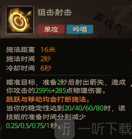 效果:瞄准目标,准备2秒后射出箭矢,造成你攻击的259%+285点物理伤害。