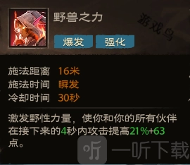 效果:激发野性力量,使你和你的所有伙伴在接下来的4秒内攻击提高21%+63点。