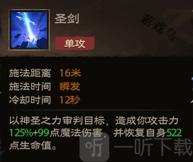 效果:以神圣之力审判目标,造成你攻击力125%+99点魔法伤害,并恢复自身522点生命值。