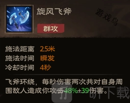 效果:飞斧环绕,每秒伤害两次共对自身周围敌人造成你攻击48%+39伤害。