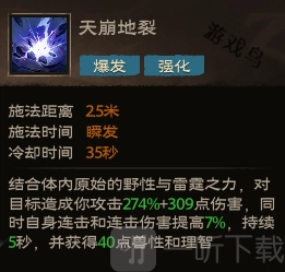 效果:融合体内与生俱来的野性与雷霆之力,对目标造成相当于你攻击力274%加上309点的伤害。与此同时,自身的连击几率与连击伤害提升7%,该增益效果持续5秒,并且还能获取40点兽性以及理智。