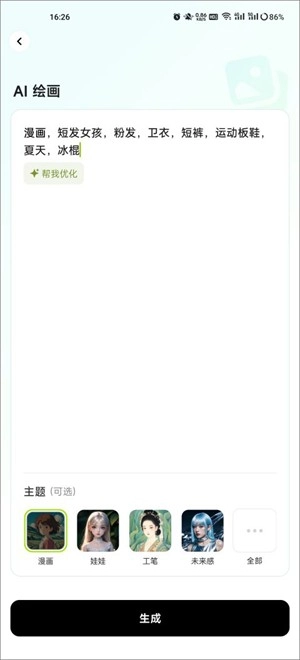 2、选好主题后,输入你期望的图片风格描述,描述得越详细具体,生成出来的图片效果就会越理想。