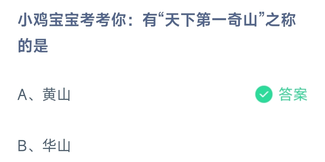 题目:小鸡宝宝来考考你,有着“天下第一奇山”之称的是哪座山呢?
