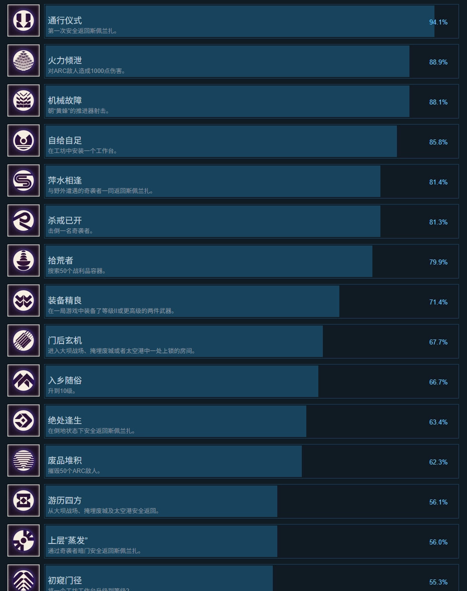 根据Steam平台的成就数据,撤离射击类游戏《ARC Raiders》里,有超半数玩家对PvP模式兴趣寥寥。其中,要求击倒10名奇袭者的成就“不讲情面”,在Steam上的完成率仅达42.8%。