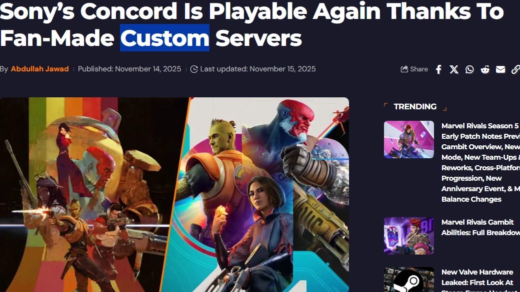 据悉,此前有一个高玩组织公布了名为“Concord Delta”的项目,该项目实际是玩家私自搭建的服务器,目前并无证据表明其获得索尼互娱的官方授权,且这种可能性也较低。11月14日,该组织突然兴奋地宣布“Concord Delta”私建服务器已测试通过并可运行,同时发布了宣传片,这一消息随即引发了热议。
