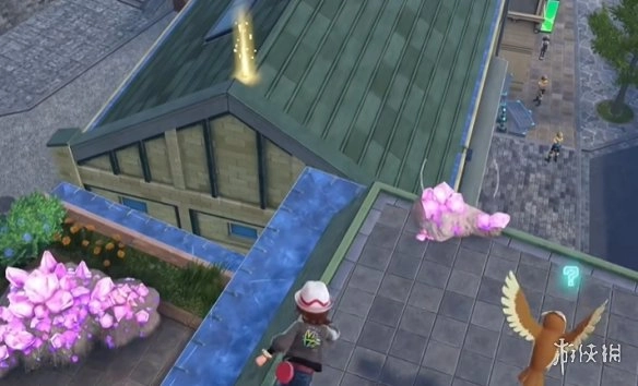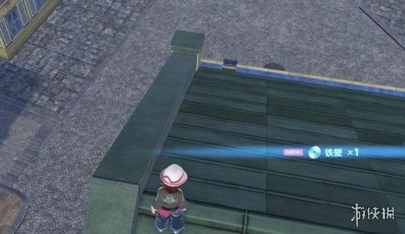 4、借助滑翔降落到对面的屋顶,拾起宝可梦球后即可得到铁壁的招式学习器。