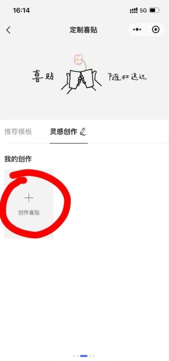 3.进入定制喜帖的页面后,点击“灵感创作”这一选项