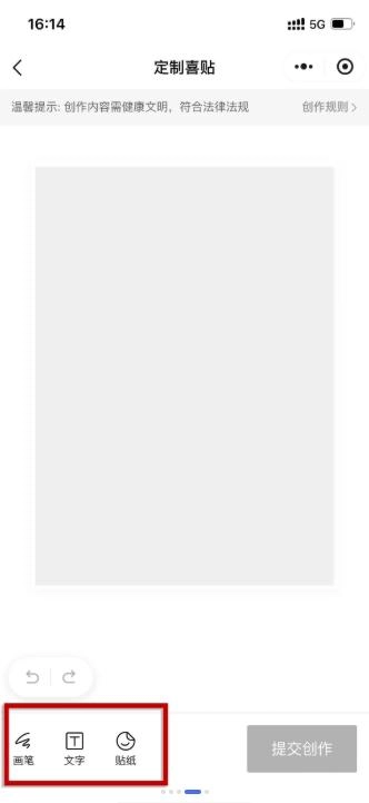 5. 进入创作界面后,你会看到一块空白的画布。借助底部的工具栏,你能够挑选画笔、添加文字或是贴纸,以此来装点你的喜帖。