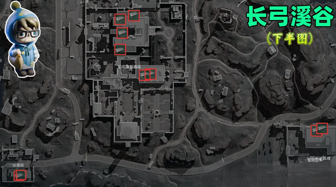 长弓溪谷下半区域手提箱的位置:
