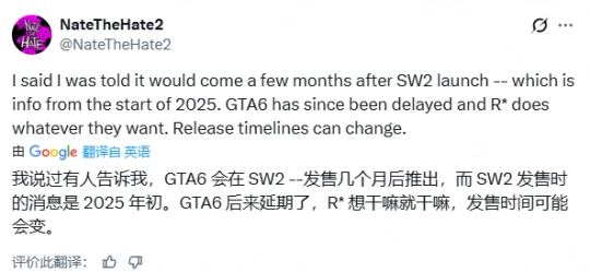 值得留意的是,近日,业内知名爆料者NateTheHate透露,《荒野大镖客:救赎2》的“增强版”仍处于开发进程中。针对RDR1重制版的发布消息,他在社交媒体上回应表示:“这并不会对RDR2项目的推进造成影响”。在被问到具体的发售时间时,他进一步补充道:“之前得到的消息是计划在Switch 2发售数月后推出——这是2025年初的相关信息”,同时他还提到,随着《GTA6》的延期,Rockstar“完全拥有发布计划的自主决定权,时间表或许会随时进行调整”。