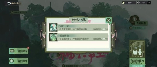 三、战斗结束后,可通过查看左上角地图的探险度是否达到100%来进行检查。最后返回首页时,记得前往右上角的青瓷莲影处交换道具,全部交换完成后会获得物铭(物铭可在首页左上角查看)
