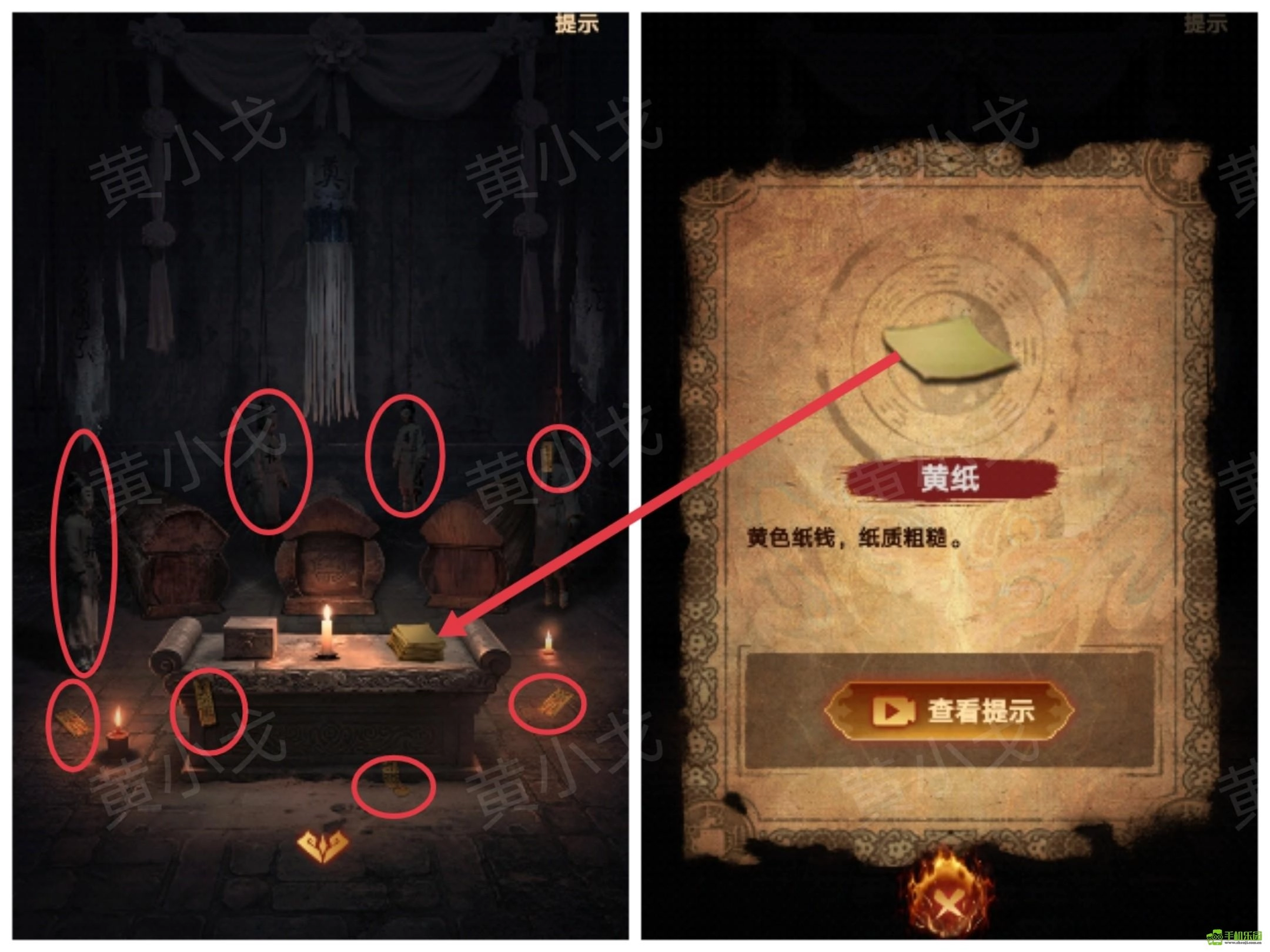 注意场景中的符纸和瓷偶的数量:符纸-5、瓷偶-4
