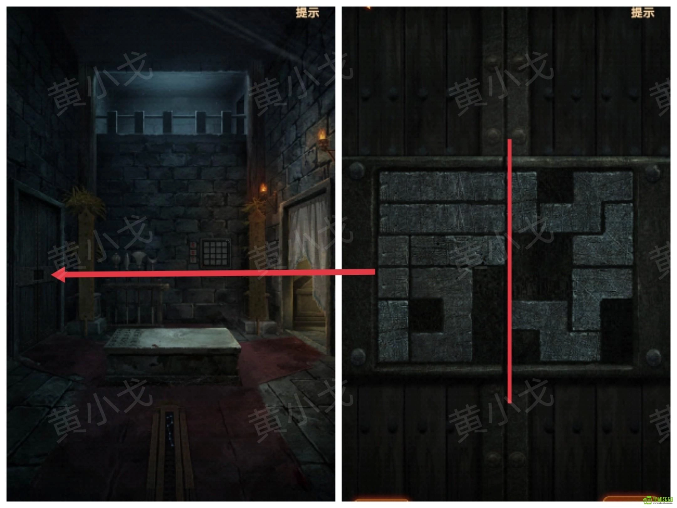 6、点击左侧门上的机关,完成小游戏,打开门