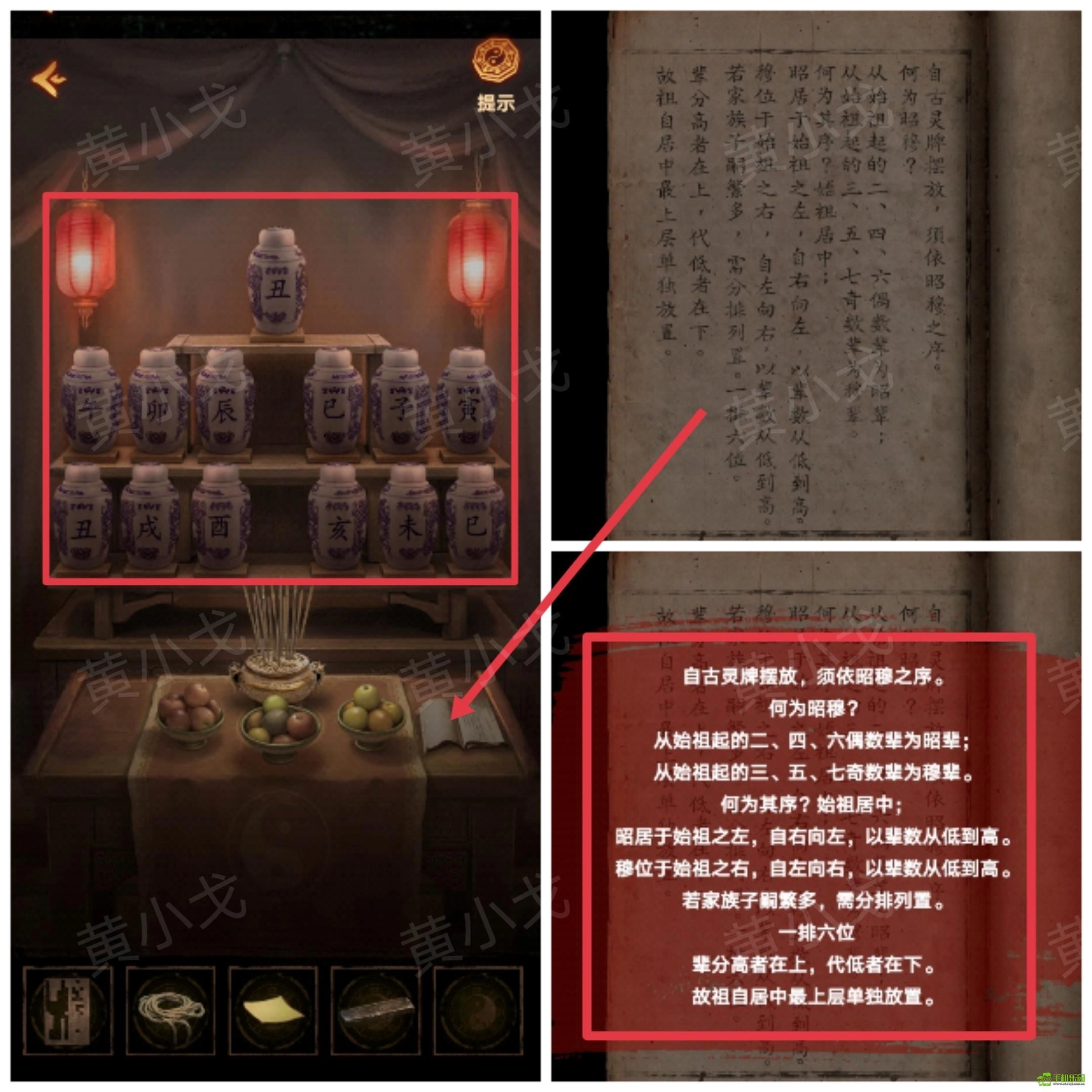 10、查看供桌上的书,获得灵牌摆放顺序